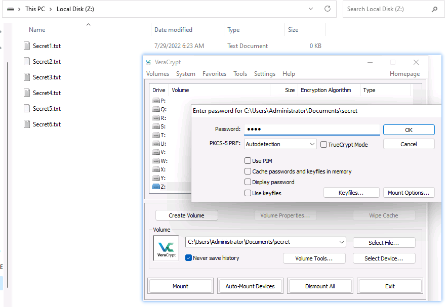 13. A VeraCrypt volume file "secret" is stored on the Document folder in the "EH Workstation – 2" machine. You are an ethical hacker working with CEHORG; you have been tasked to decrypt the encrypted volume and determine the number of files stored in the volume. (Hint: Password: test). (Format: N)