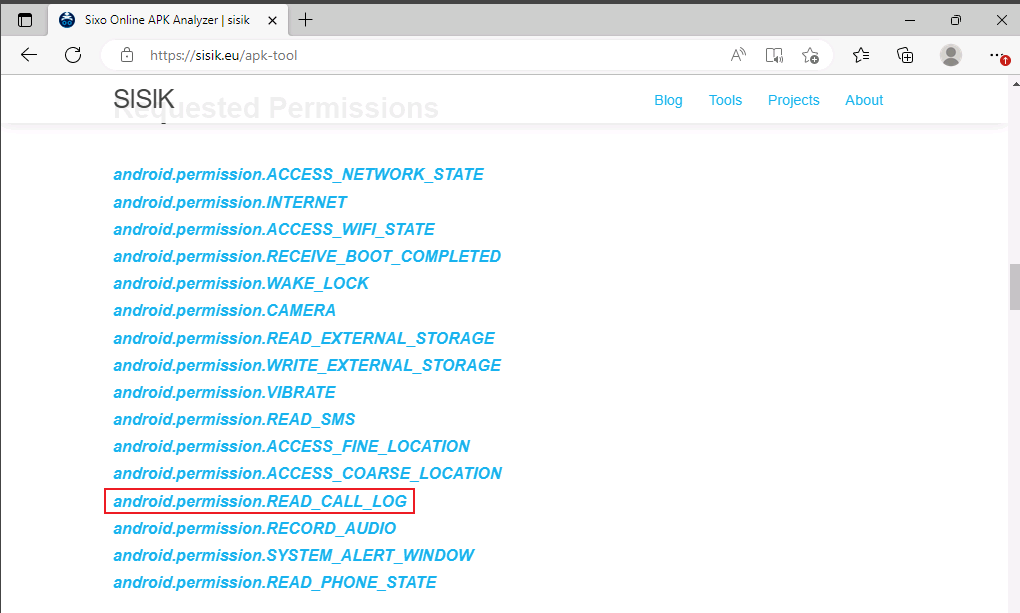 5. An attacker installed a malicious mobile application 'AntiMalwarescanner.apk' on the victims android device which is located in EH workstation-2 documents folder. You are assigned a task to perform security audit on the mobile application and find out whether the application using permission to Read-call-logs. (Format: Aaa )