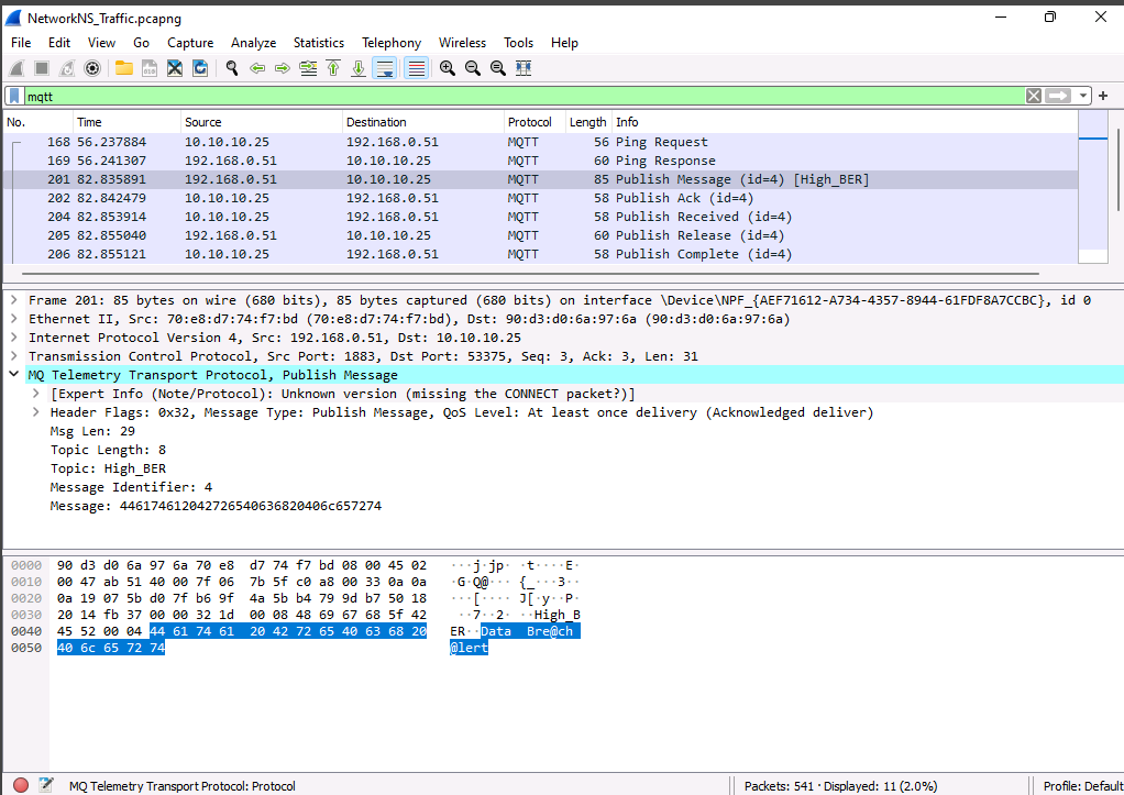9. CEHORG hosts multiple IOT devices and network sensors to manage its IT-department. You are assigned a task to examine the file "NetworkNS_Traffic.pcapng" located in the Documents folder of the user in the "EH Workstation - 2" machine. Analyze the packet and find the alert message sent to the sensor. (Format: Aaaa Aaa*aa *aaaa)