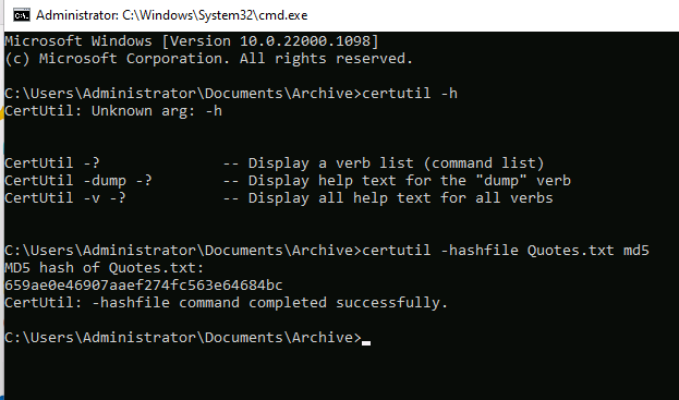 10. You have received a folder named "Archive" from a vendor. You suspect that someone might have tampered with the files during transmission. The Original hashes of the files have been sent by the sender separately and are stored in a file named FileHashes.txt stored in the Document folder in the "EH Workstation – 2" machine. Your task is to check the integrity of the files by comparing the MD5 hashes. Compare the hash values and determine the file name that has been tampered with. Note: Exclude the file extension in the answer field. The answer is case-sensitive. (Format: Aaaaaa)